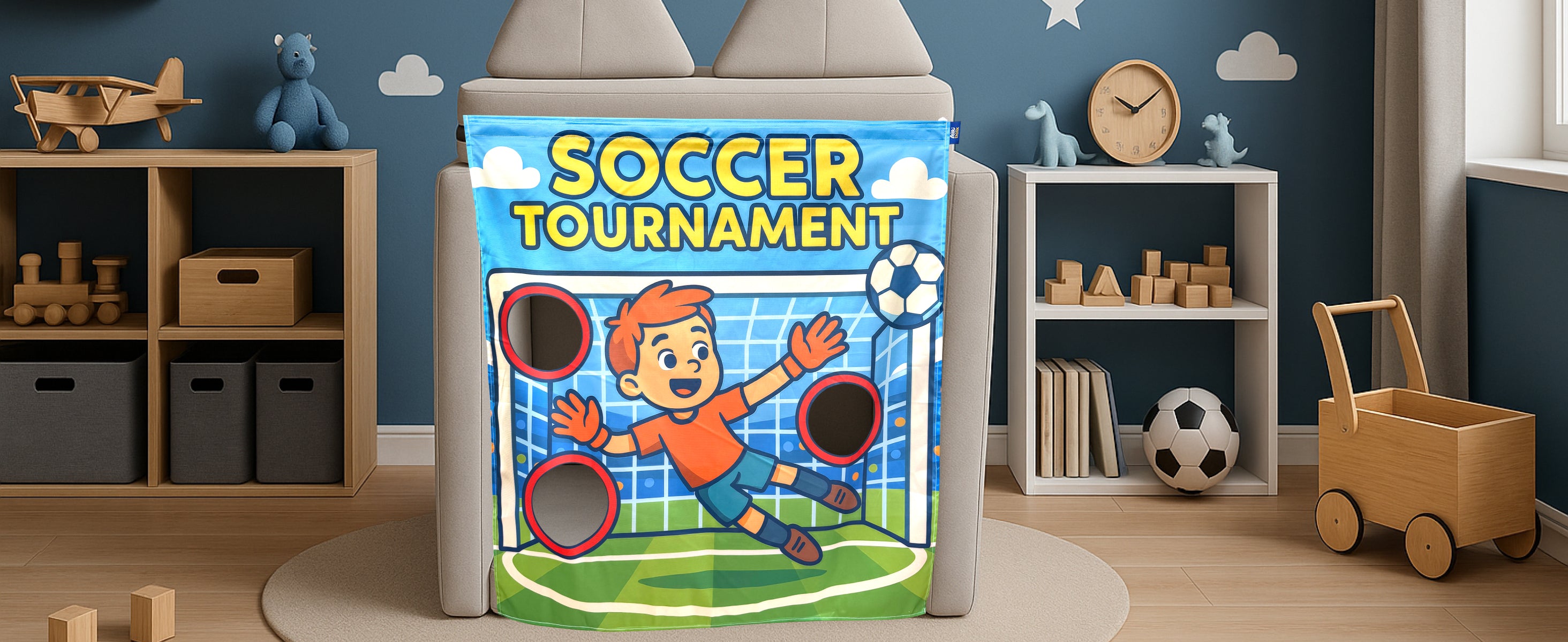 No play couch? Hang it on doors & tiny corners.